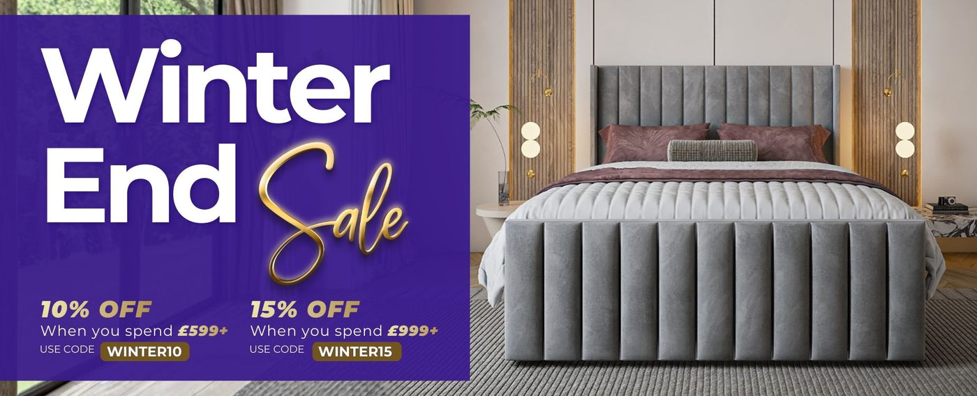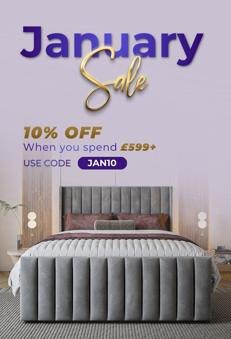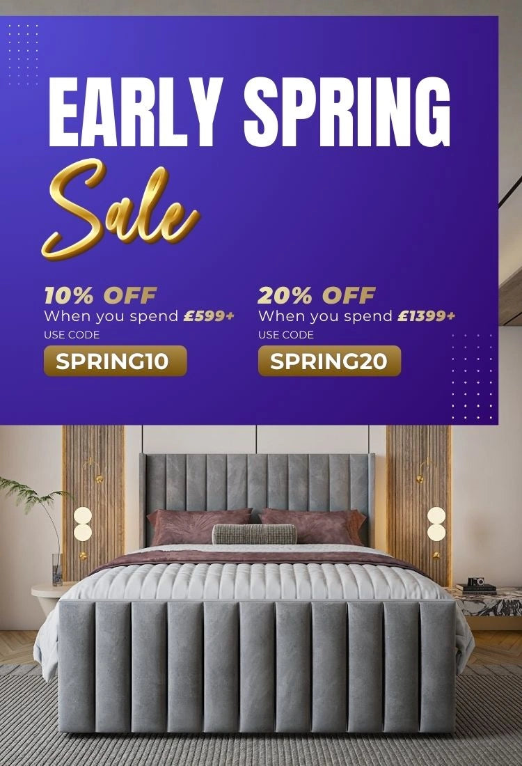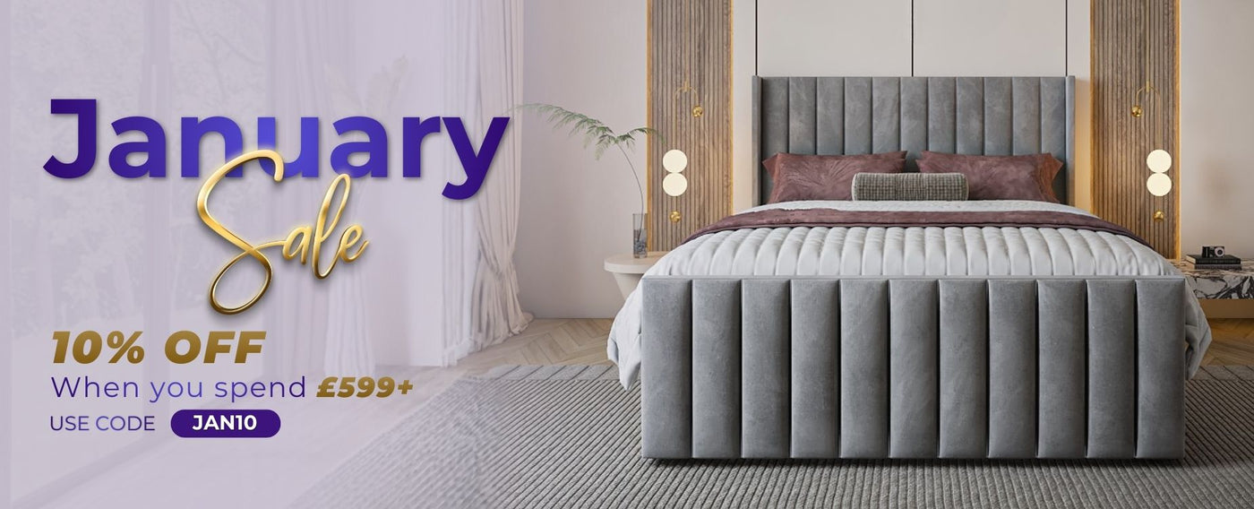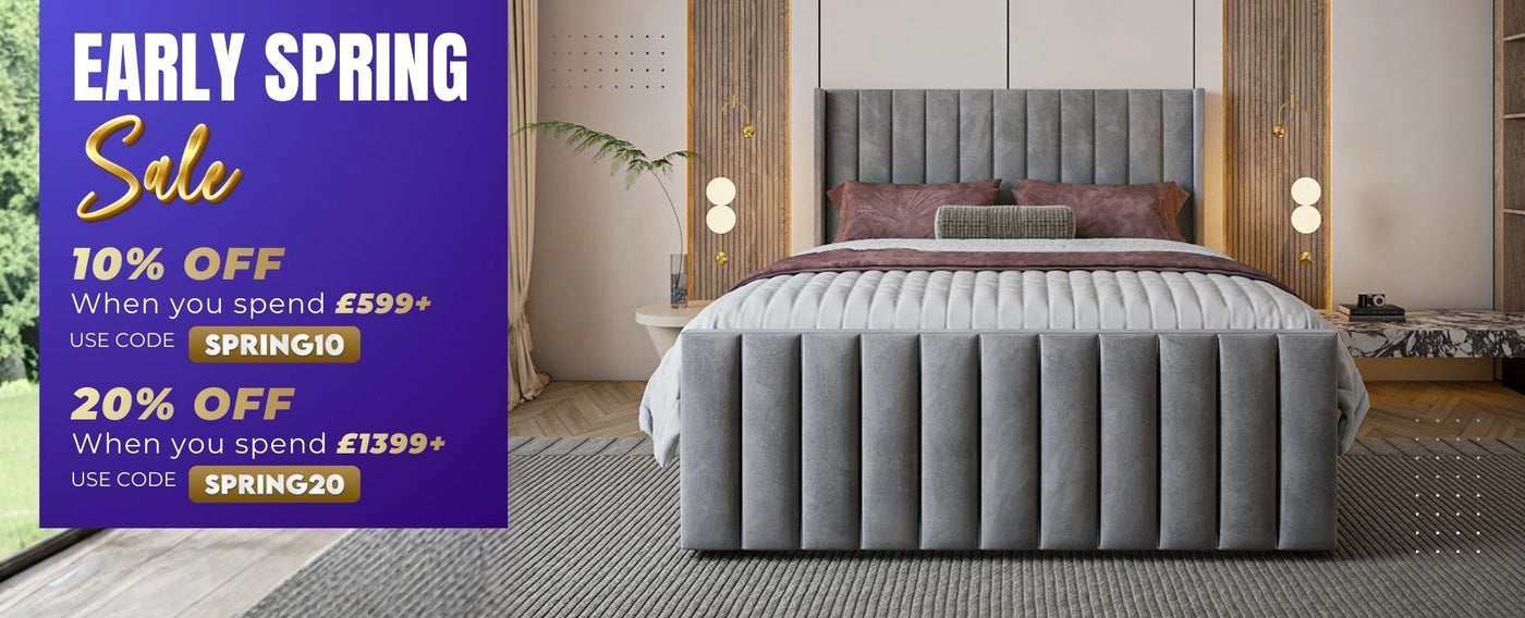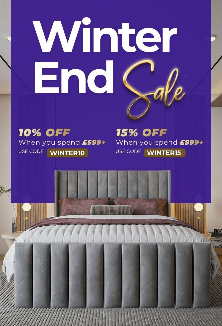 Lucy High End Bed Frame Pictured With Tall 90" (7ft5) Headboard