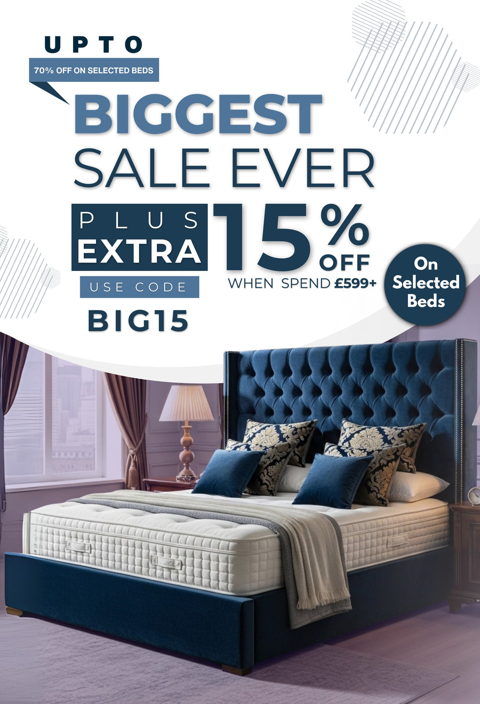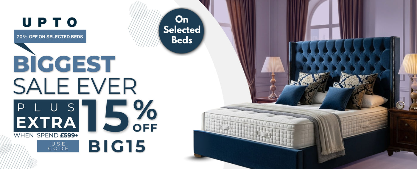 Lucy High End Bed Frame Pictured With Tall 90" (7ft5) Headboard