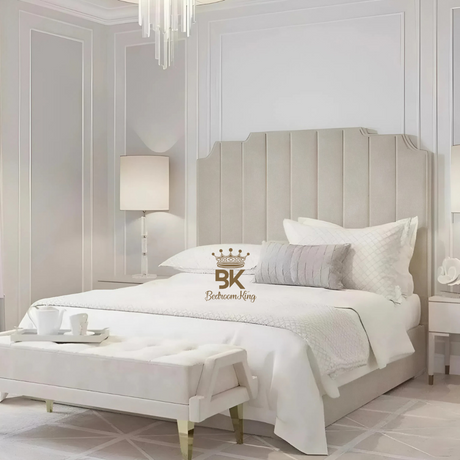 Lacey Art Deco Bedframe - Cream Crushed Velvet