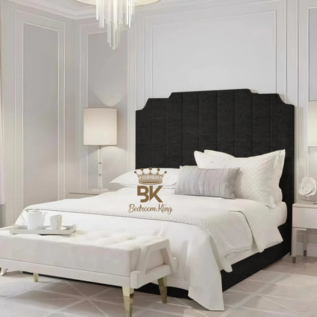 Lacey Art Deco Bedframe - Black Crushed Velvet
