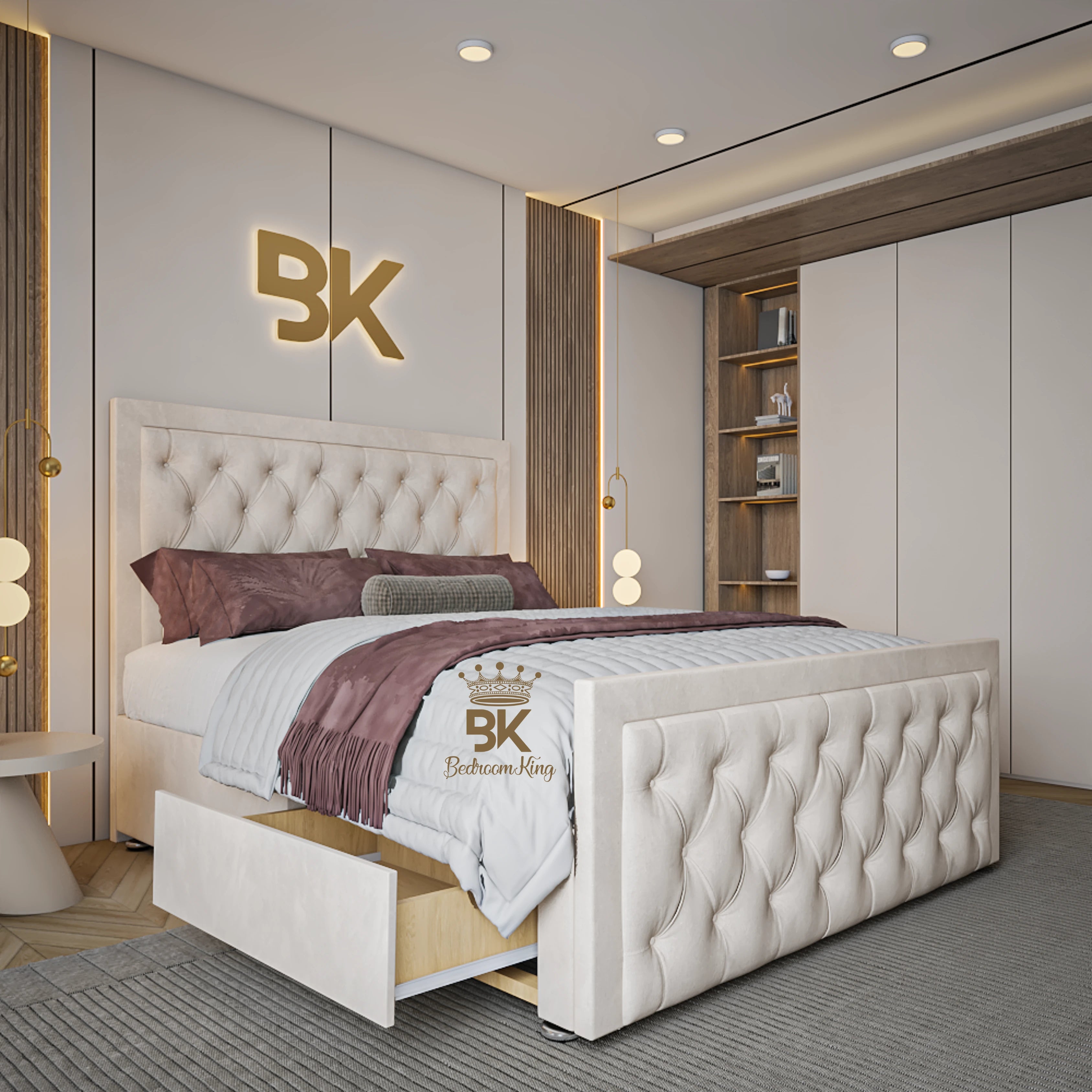 - Bed in image is Cream Plush Velvet