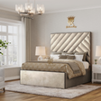 Isbah Piped Border Storage Bedframe - Cream Crushed Velvet