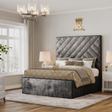 Isbah Piped Border Storage Bedframe - Deep Grey Crushed Velvet