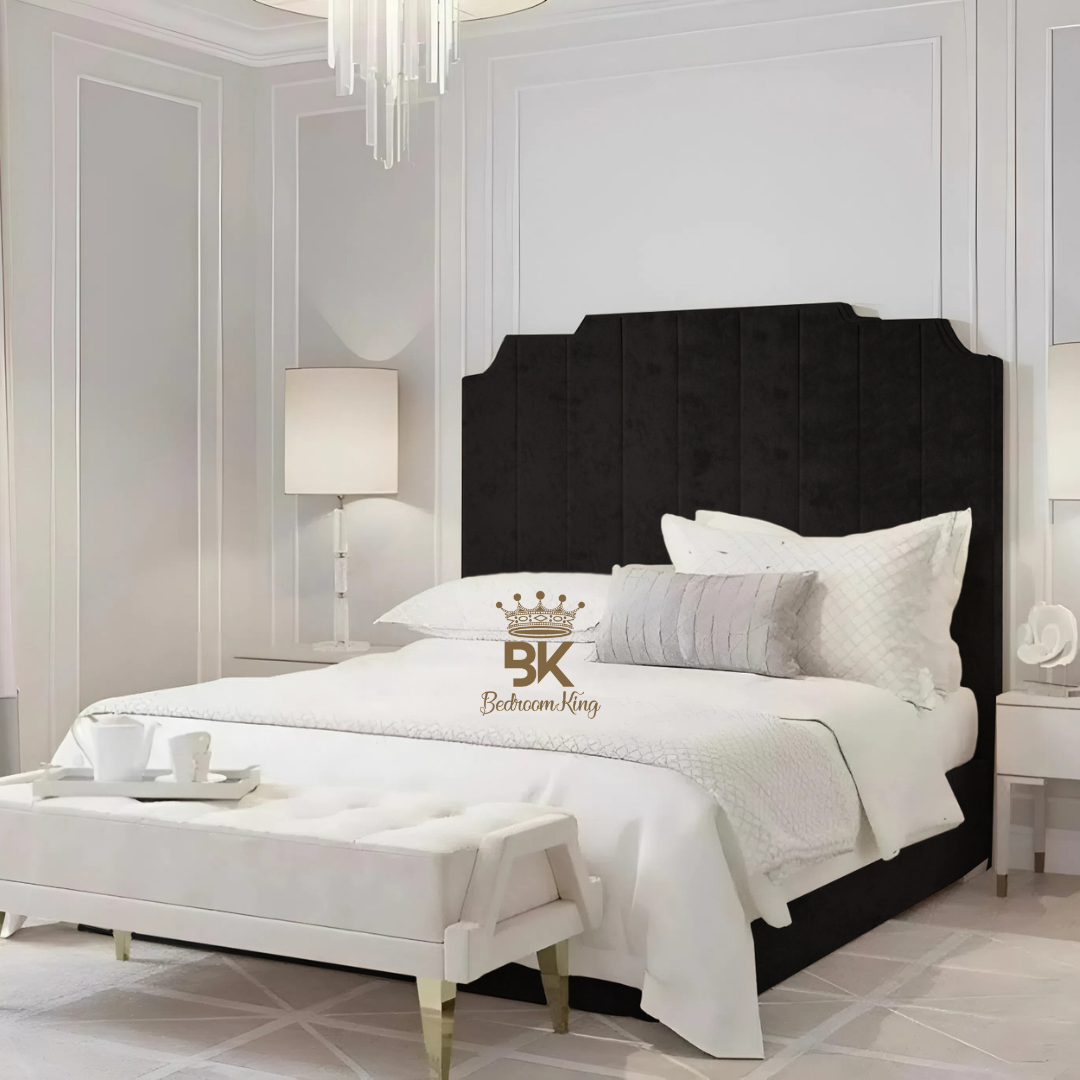 Lacey Art Deco Bedframe Pictured With Tall Headboard