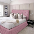 Monarch Bed Frame With Chesterfield Upholstery - Pink Plush Velvet